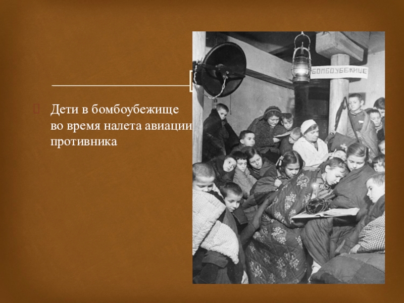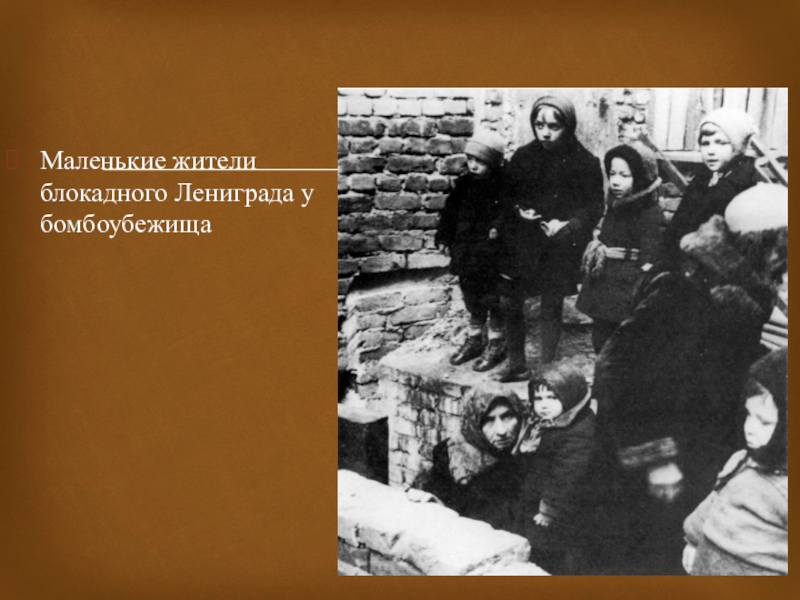 Маленькие жители блокадного Лениграда у бомбоубежища