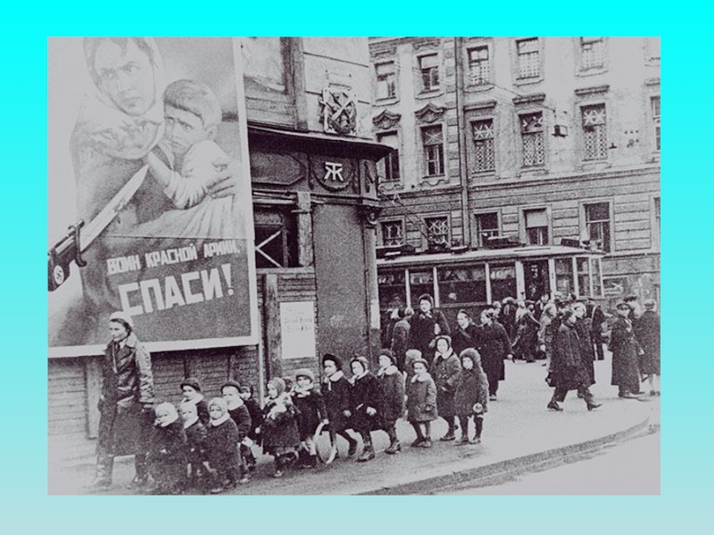 Слайд 32Хлеб – в Ленинград, а детей – в тыл.