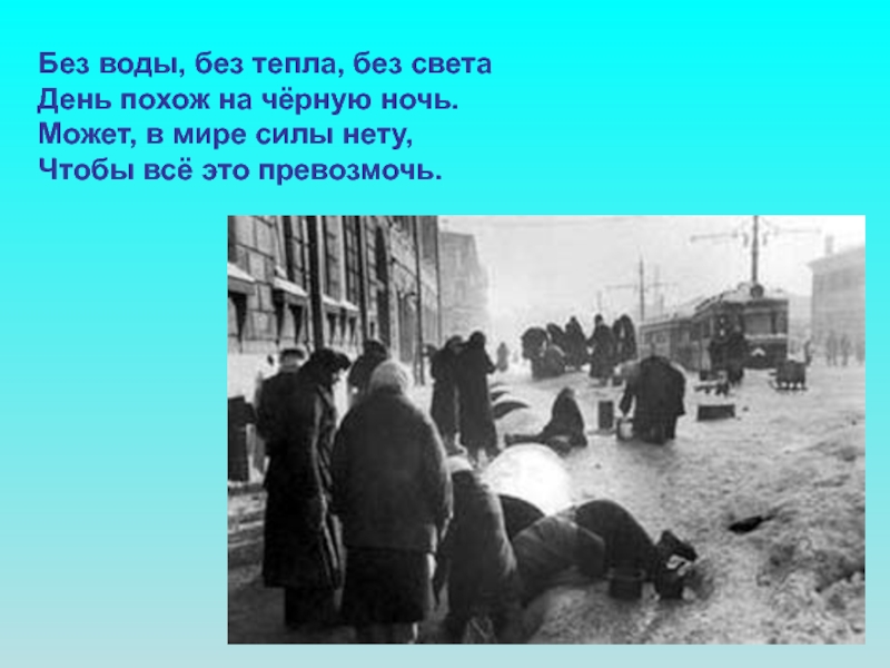 Слайд 59Водопровод не работал. Люди ходили за водой на Неву.
