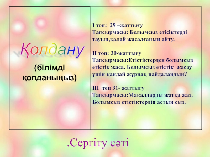 Слайд 15Үйге тапсырма: