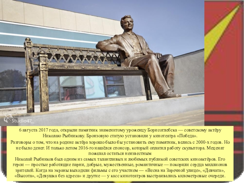 Слайд 186 августа 2017 года, открыли памятник знаменитому уроженцу Борисоглебска — советскому