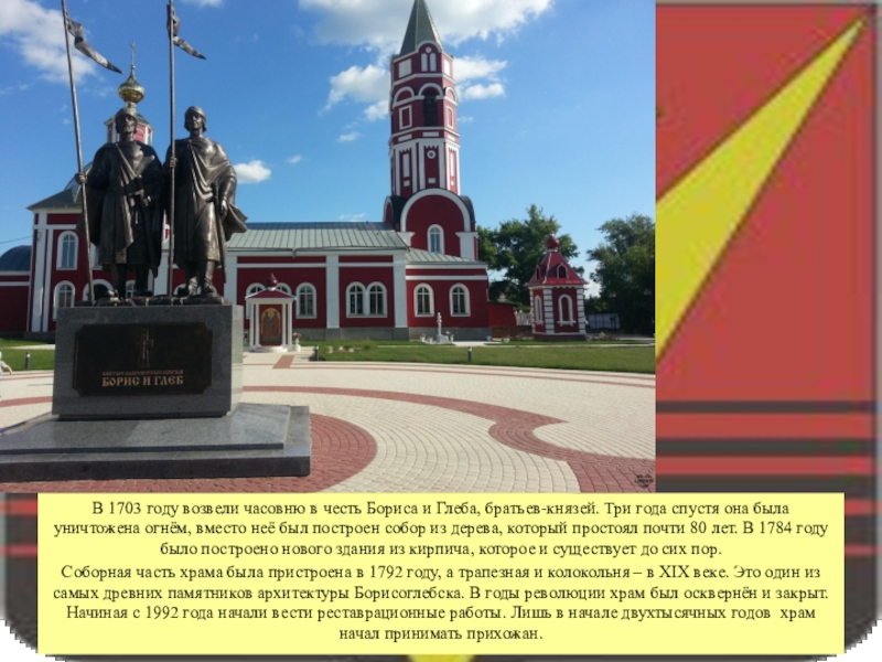 Слайд 12В 1703 году возвели часовню в честь Бориса и Глеба, братьев-князей.