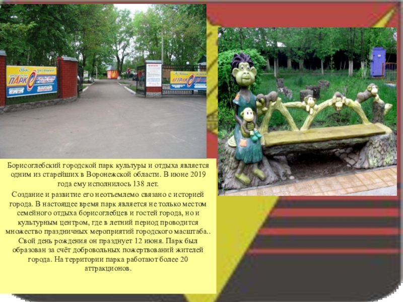 Слайд 8Борисоглебский городской парк культуры и отдыха является одним из старейших в