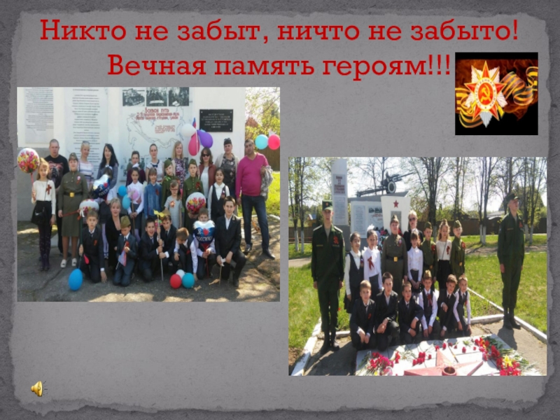 Слайд 11Никто не забыт, ничто не забыто! Вечная память героям!!!