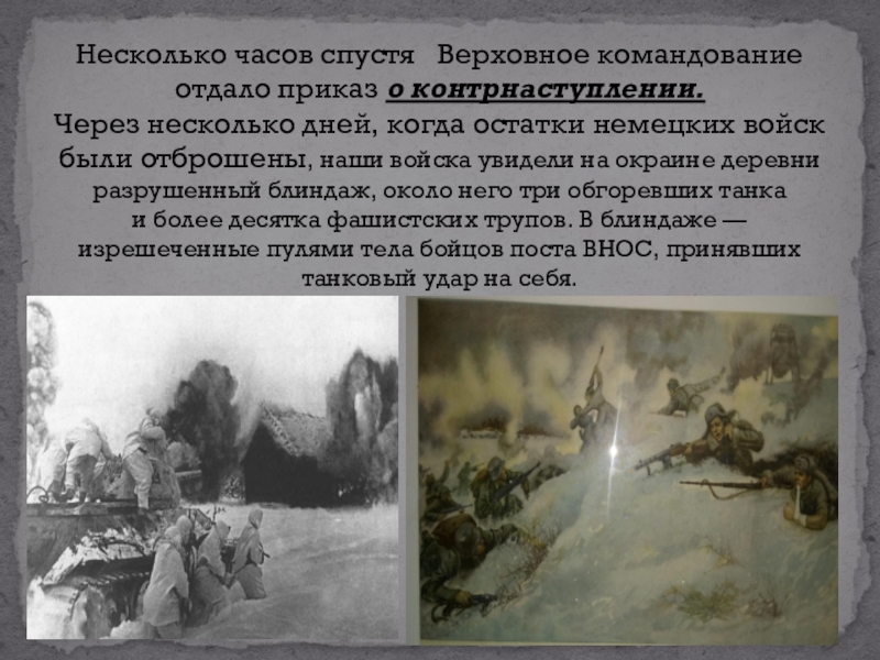 Слайд 6Несколько часов спустя Верховное командование отдало приказ о контрнаступлении.  Через несколько дней,
