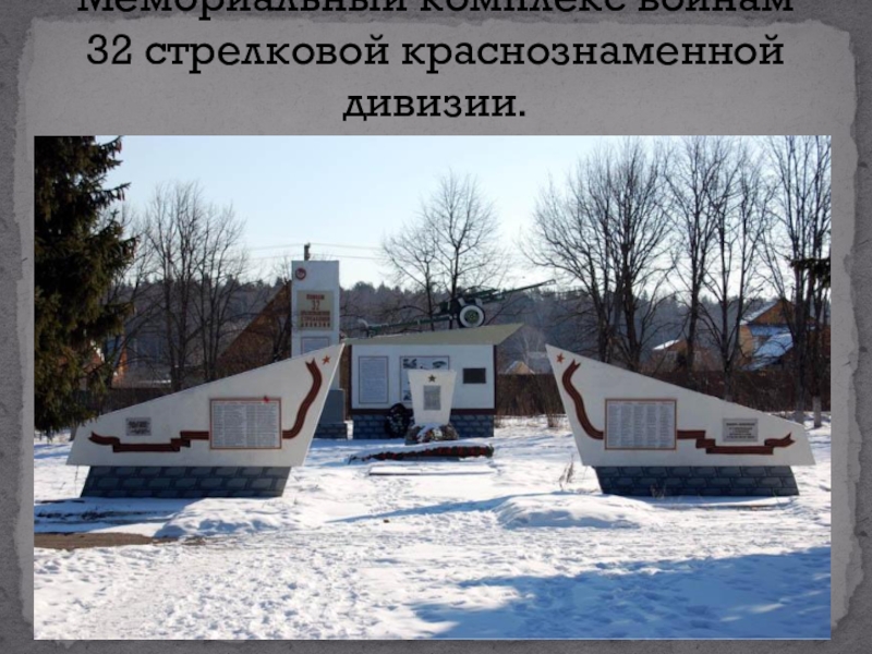 Слайд 12Мемориальный комплекс воинам 32 стрелковой краснознаменной дивизии.