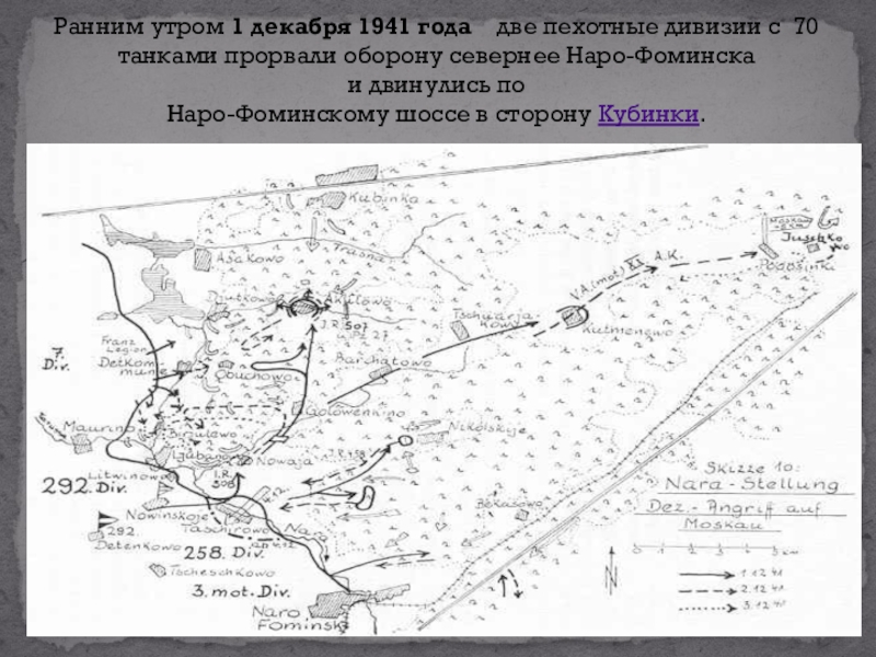 Ранним утром 1 декабря 1941 года  две пехотные дивизии с  70 танками прорвали оборону севернее Наро-Фоминска