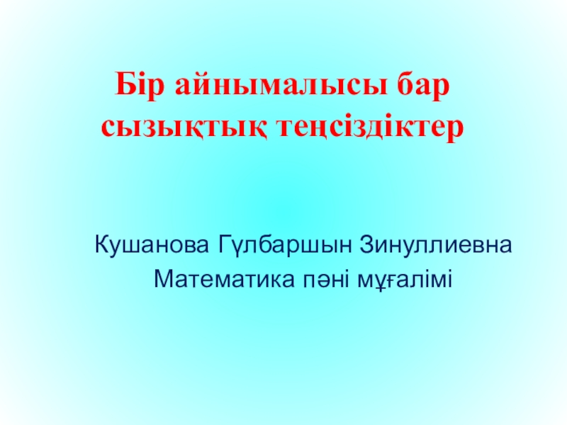 Бір айнымалысы бар сызықтық теңсіздіктер Кушанова Гүлбаршын ЗинуллиевнаМатематика пәні мұғалімі