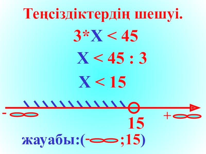 3*X < 45Теңсіздіктердің шешуі. X < 45 : 3 X < 15