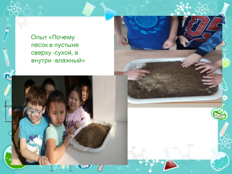 Слайд 14Опыт «Почему песок в пустыне сверху -сухой, а внутри -влажный»