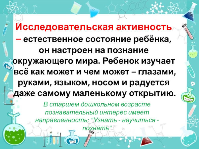 Исследовательская активность – естественное состояние ребёнка, он настроен на познание окружающего