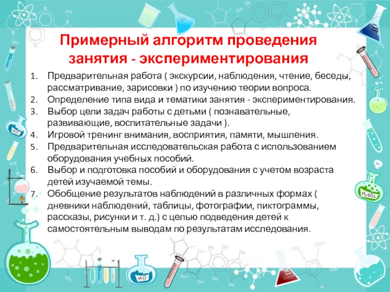 Слайд 8Примерный алгоритм проведения занятия - экспериментирования
