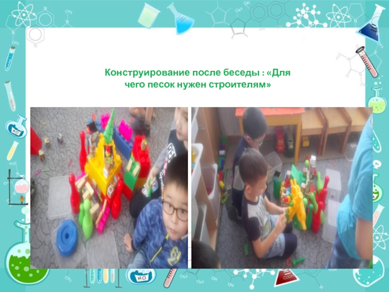Слайд 17Конструирование после беседы : «Для чего песок нужен строителям»