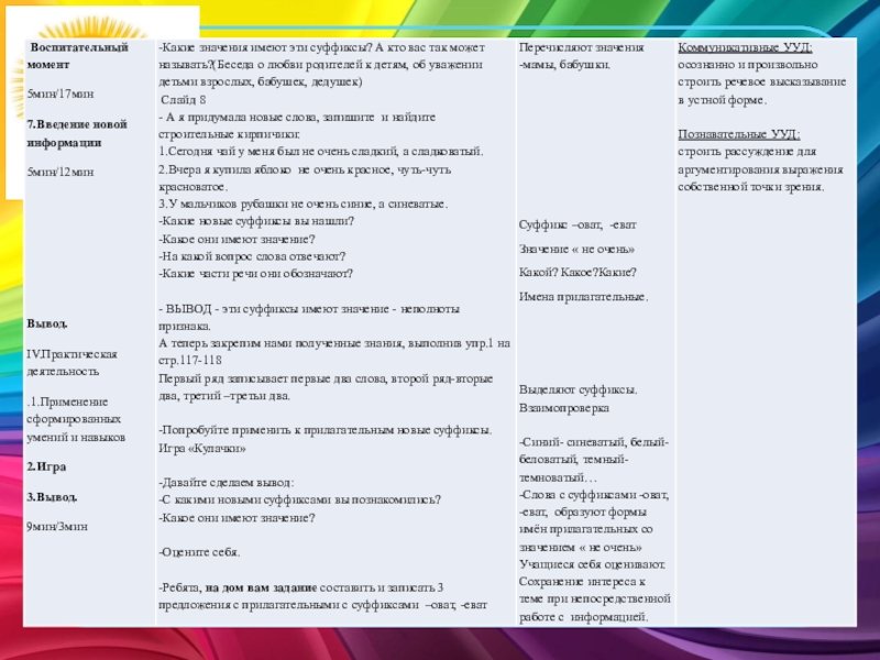 Цель урока: расширить знания о значении суффиксов, совершенствовать навыки словообразования с помощью суффиксов.