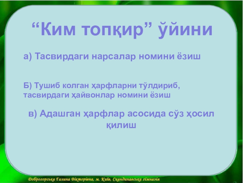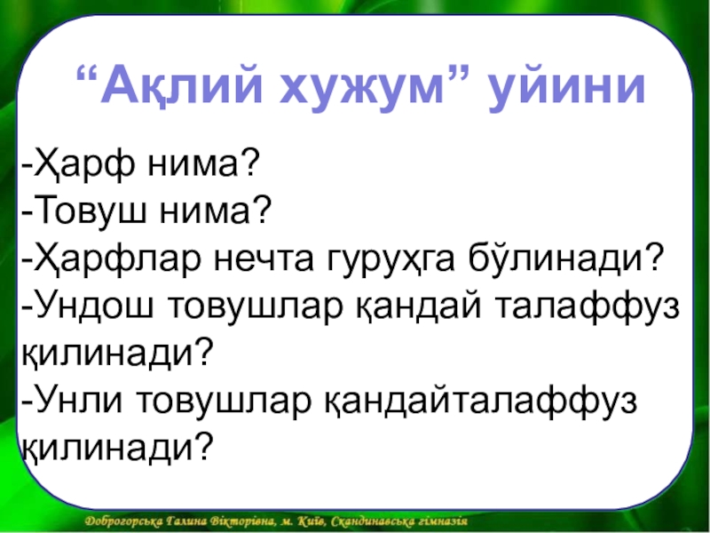Ўқитувчи: Гўзал Хасанова