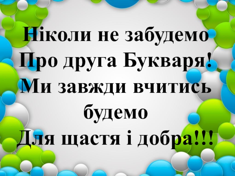 Слайд 30Ніколи не забудемо Про друга Букваря! Ми завжди вчитись будемо Для щастя і добра!!!