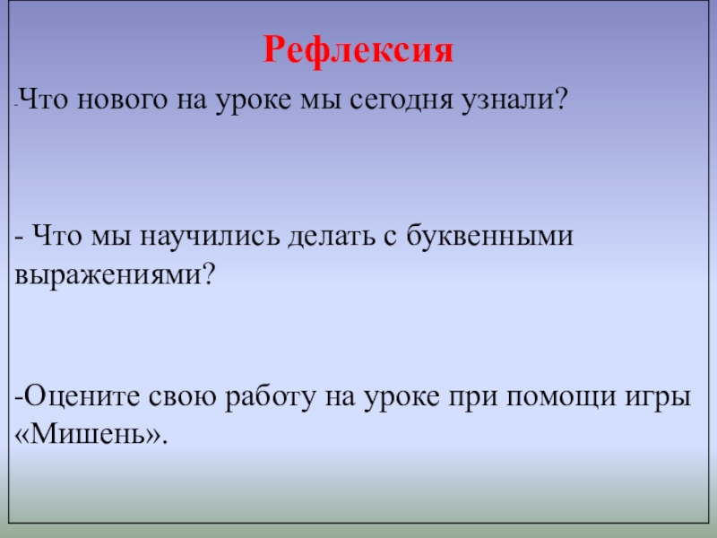 буквенных выражений.
