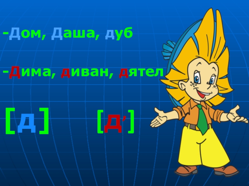 -Дом, Даша, дуб-Дима, диван, дятел[д]   [д,]