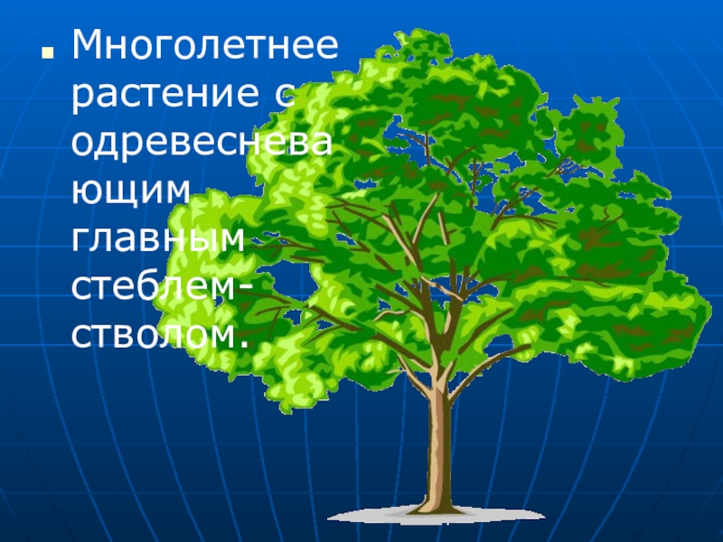 Слайд 11Многолетнее растение с одревесневающим главным стеблем- стволом.