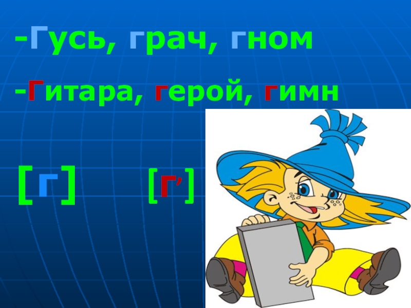 -Гусь, грач, гном -Гитара, герой, гимн [г] [г,]