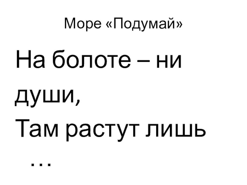 Море «Подумай»На болоте – нидуши,Там растут лишь …