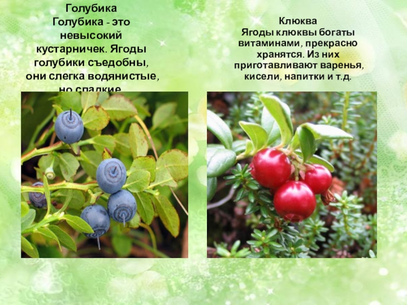 Ягоды клюквы богаты витаминами, прекрасно хранятся. Из них приготавливают варенья, кисели, напитки и т.д.