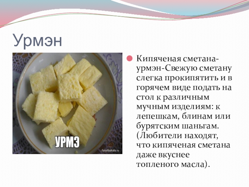 стол к различным мучным изделиям: к лепешкам, блинам или бурятским шаньгам. (Любители находят, что кипяченая сметана даже вкуснее топленого масла).