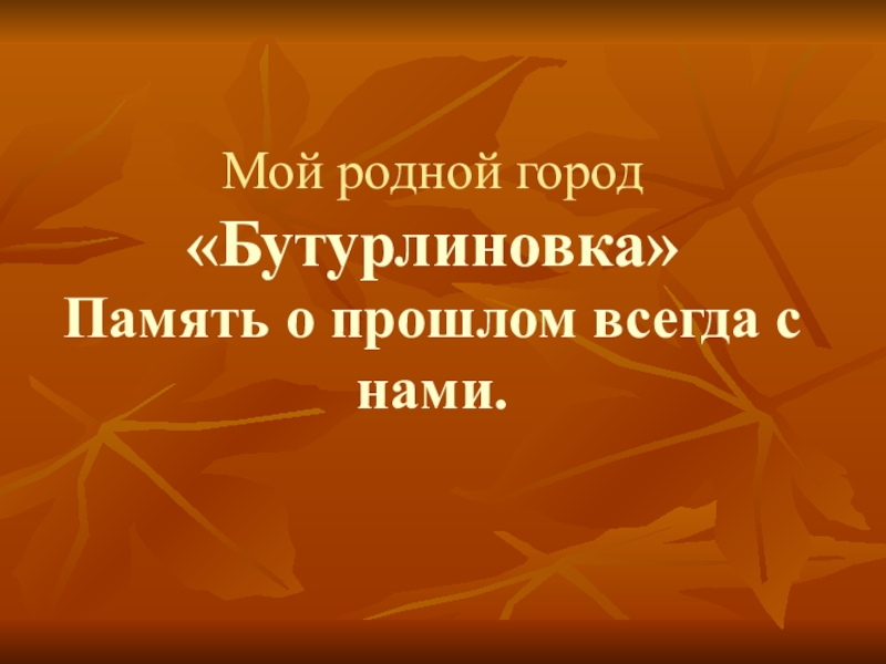 Слайд 1Мой родной город «Бутурлиновка» Память о прошлом всегда с нами.