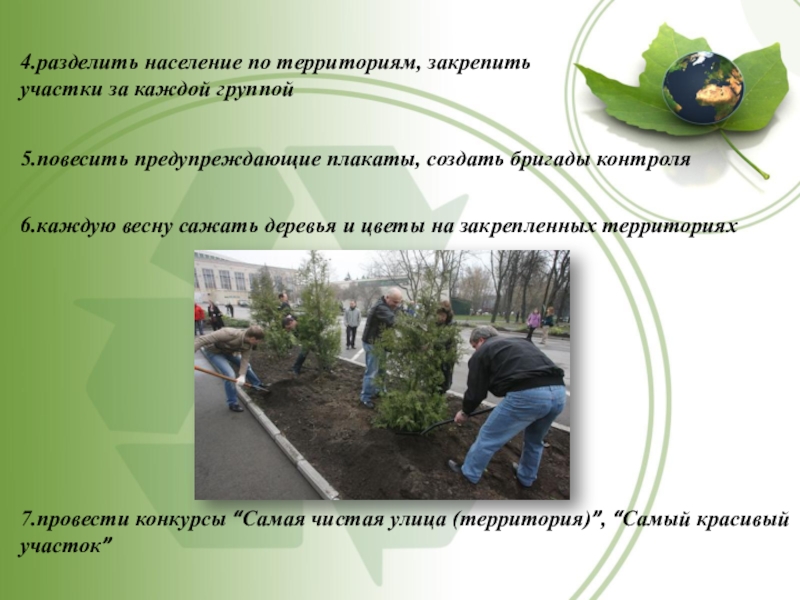 6.каждую весну сажать деревья и цветы на закрепленных территориях