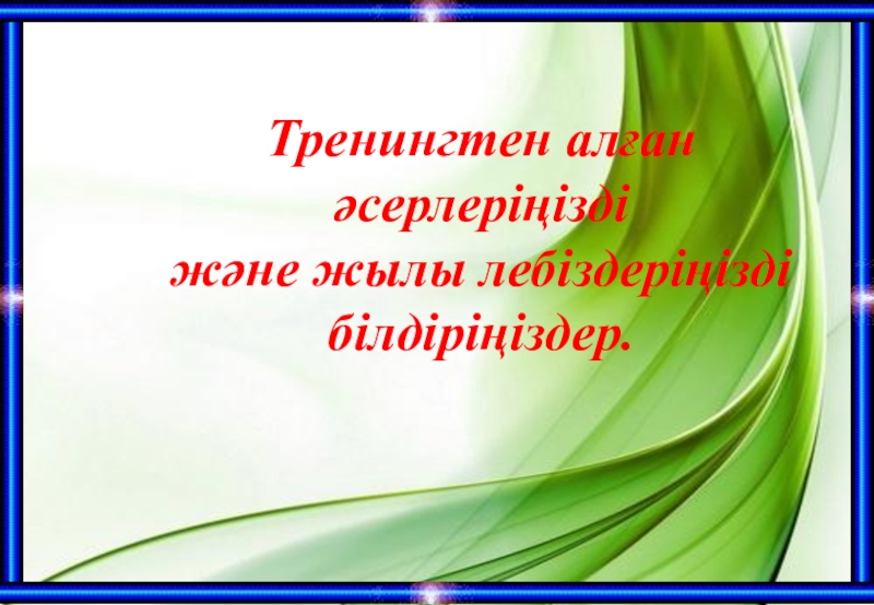 Слайд 15Тренингтен алған әсерлеріңізді