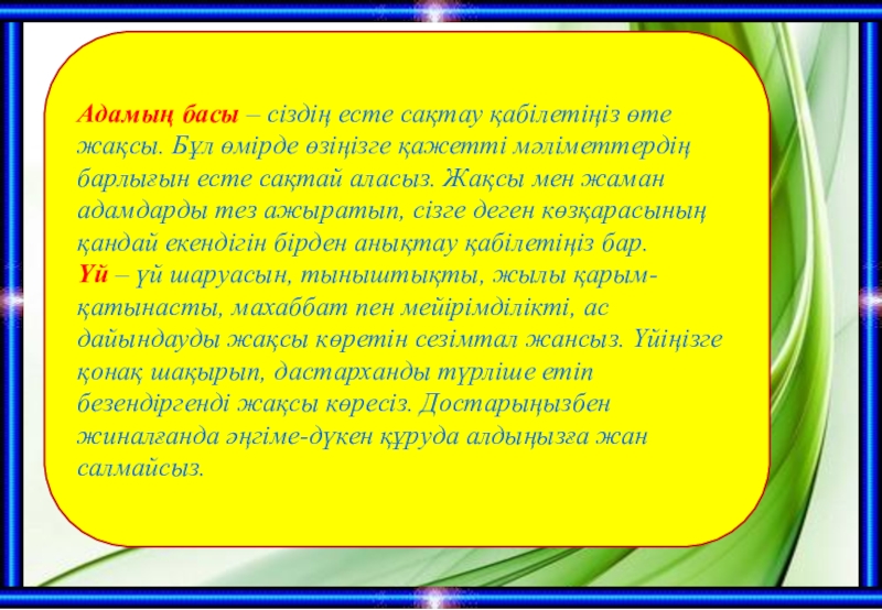Слайд 14Адамың басы – сіздің есте сақтау қабілетіңіз өте жақсы. Бұл өмірде өзіңізге