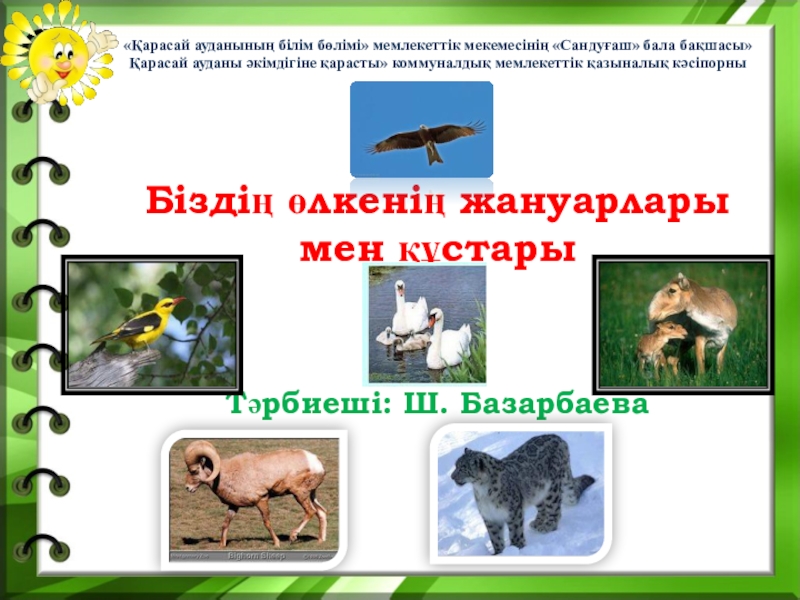 Слайд 1«Қарасай ауданының білім бөлімі» мемлекеттік мекемесінің «Сандуғаш» бала бақшасы» Қарасай ауданы