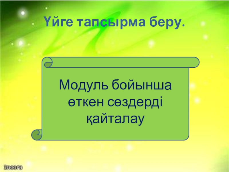 Үйге тапсырма беру.Модуль бойынша өткен сөздерді қайталау