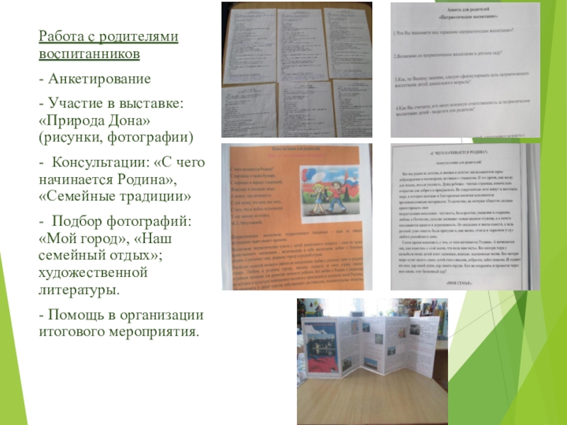 - Консультации: «С чего начинается Родина», «Семейные традиции»