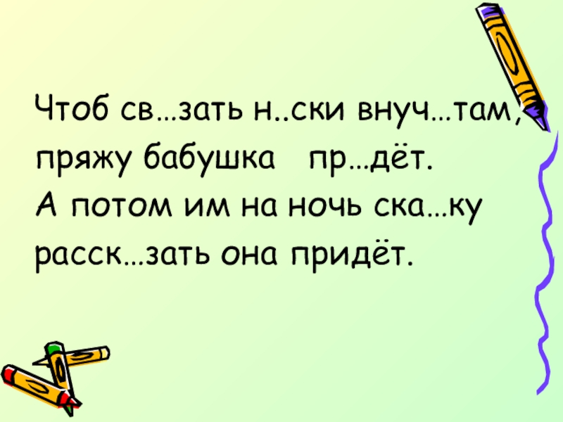 Слайд 15Чтоб св…зать н..ски внуч…там,
