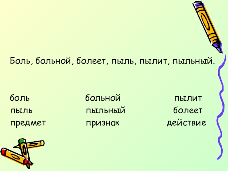 Боль, больной, болеет, пыль, пылит, пыльный.боль больной пылитпыль