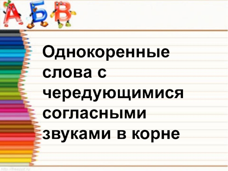 Слайд 3Однокоренные слова с чередующимися согласными звуками в корне