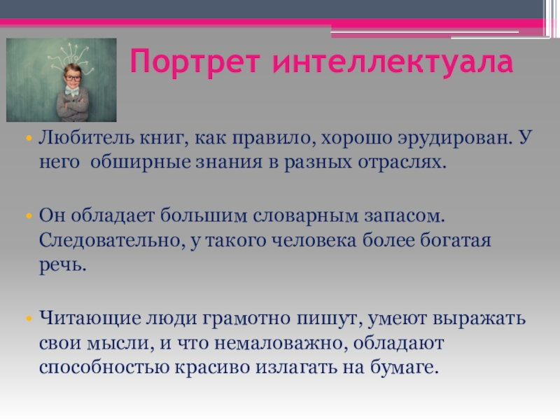 Любитель книг, как правило, хорошо эрудирован. У него обширные знания