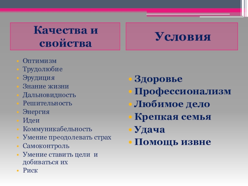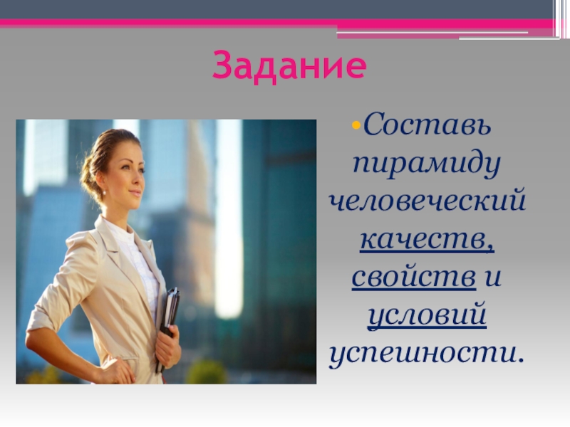 Составь пирамиду человеческий качеств, свойств и условий успешности.