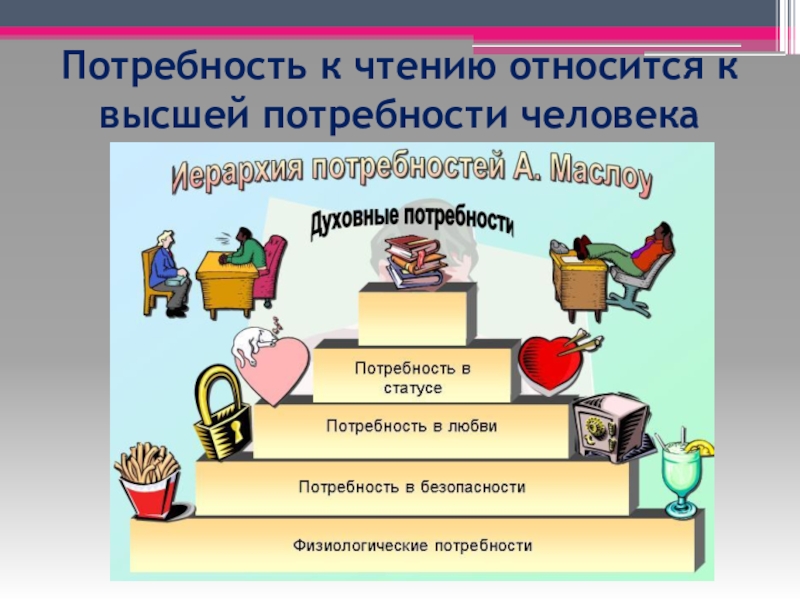 Слайд 3Потребность к чтению относится к высшей потребности человека