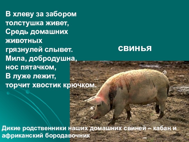 Слайд 27 Свинья валяется в грязи не прсто так, она регулирует температуру