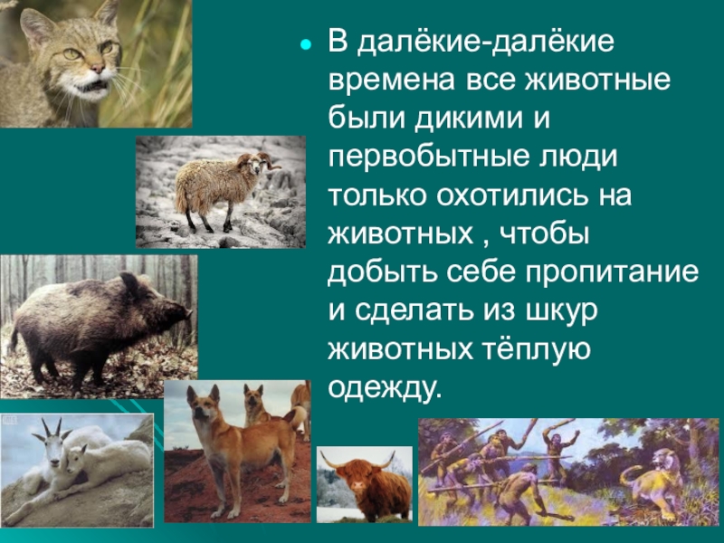 Слайд 2В далёкие-далёкие времена все животные были дикими и первобытные люди только