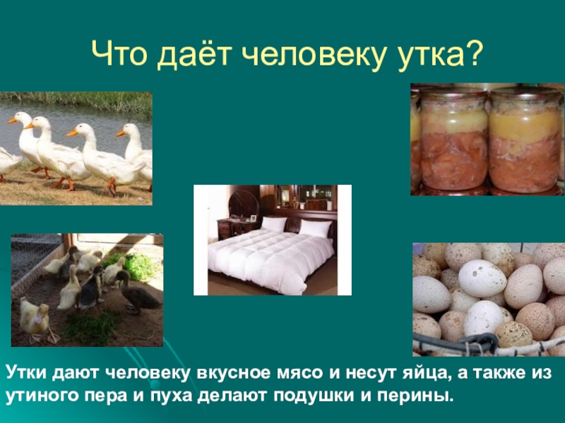 Слайд 34Предком домашних уток была дикая утка, или кряква. Одной из стран,