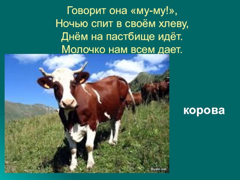 Слайд 16Корове во многих странах поставлены памятники. В Голландии на памятнике выбита