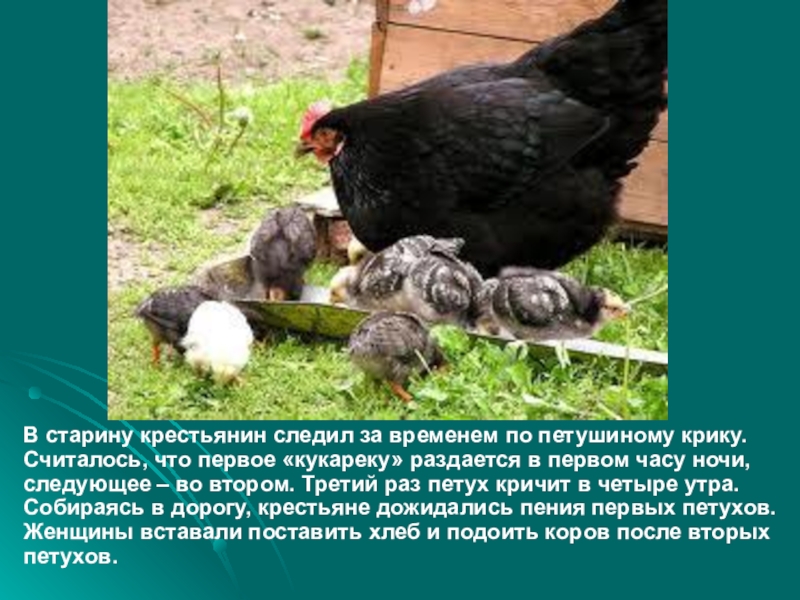 Слайд 30В старину крестьянин следил за временем по петушиному крику. Считалось, что