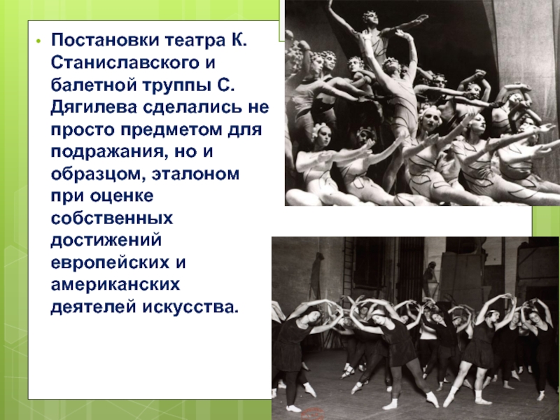 Постановки театра К. Станиславского и балетной труппы С. Дягилева сделались не