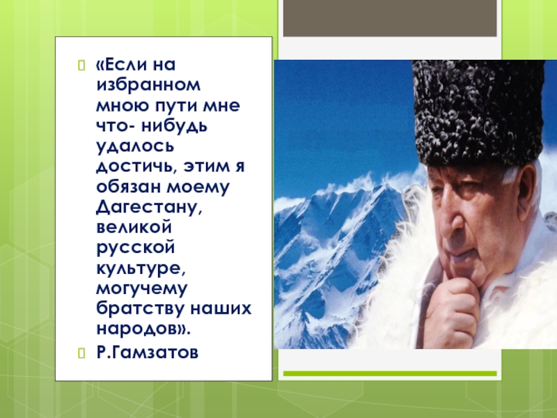 я обязан моему Дагестану, великой русской культуре, могучему братству наших народов».