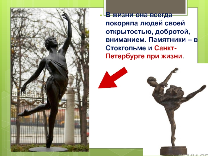 В жизни она всегда покоряла людей своей открытостью, добротой, вниманием. Памятники