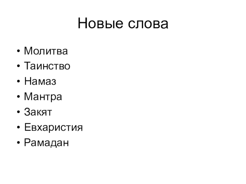 Новые слова МолитваТаинствоНамазМантраЗакят ЕвхаристияРамадан