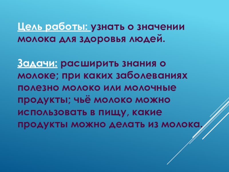 о молоке; при каких заболеваниях полезно молоко или молочные продукты; чьё молоко можно использовать в пищу, какие продукты можно делать из молока.